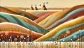 Whimsical Brush Strokes of Foxes Amidst Majestic Mountain Landscape
