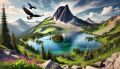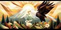 Majestic Bald Eagle in Flight Over Mountain Landscape in Art