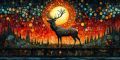 Enchanted Evening: A Stag Silhouetted Against Radiant Mosaic Moonlight