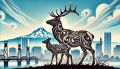 Geometric Deers on Urban Canvas: Colorful Intersection of Nature and Art