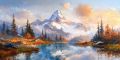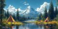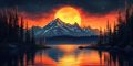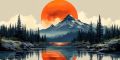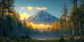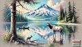 Art Deco Dream of Mount Hood Reflected in Serene Lake Waters