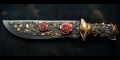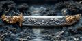 Enchanting Display of a Decorated Sword Amidst a Miniature Zen Garden