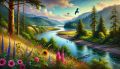 Enchanting River Winds Through Klimt-Inspired Vibrant Hues and Patterns