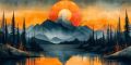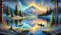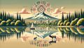 Autumn Reflections: Mount Hood and Mirror Lake in Stylized Art