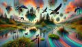 Futuristic Vision of Geese Soaring Above Tualatin River Wildlife Refuge