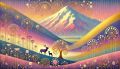 Silent Vigil under a Fiery Sky: Cats Overlooking Mountain at Sunset