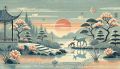 Fusion of Cultures: A Serene Spring Morning in a Stylized Chinese Garden