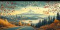 Autumn Majesty in Portland: Vibrant Leaves and Majestic Mt. Hood