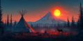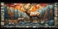 Majestic Elk and Cubs in Stained Glass Artwork at Sunset