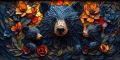 Enigmatic 3D Stained Glass Art of Black Bears Amidst Floral Array