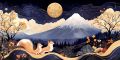 Serene Twilight at a Mountain Lake, Ukiyo-e Inspired Artwork