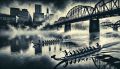 Vibrant Dragon Boat Racing Against Portland’s Surreal Skyline