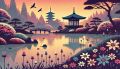 Enchanting Sunset at Portland Japanese Garden with Pagoda and Blossoms