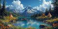 Autumn Harmony at Mirror Lake: Mount Hood in Native Art Style