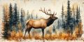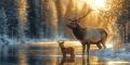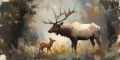 Majestic Elk and Cub in a Lush Forest, a Painterly Scene