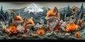Enchanting Paper Art Landscape of Autumnal Forest and Snowy Mountains