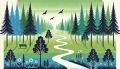 Enchanting Forest Park in Watercolor with Portland Skyline