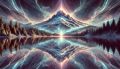 Neon Twilight: Cyberpunk Vision of Mount Hood by Mirror Lake