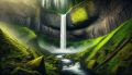 Latourell Falls Enveloped in Lush Greenery: A Digital Art Spectacle