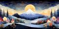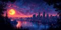 A Stylized Fusion of Nature and Urban Skyline Under a Golden Moon