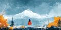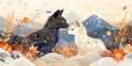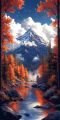 Nature and Nostalgia: A Stylized Cat Overlooking Autumn Mountains
