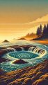 Golden Sunset Over the Serene Oregon Coastline: A Pop Art Vision