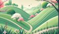 Evocative Sunset Over Rolling Hills and Lush Floral Foreground