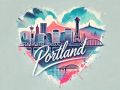 Vibrant Heart-Shaped Tribute to Portland's Iconic Cityscape