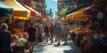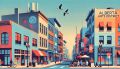Bustling Market Street Scene on a Sunny Day in Portland, Oregon