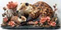 Stunning Paper Mache Sculpture of Beavers Amidst Floral Decor