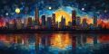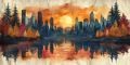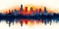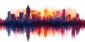 Captivating Sunset Hues over Portland’s Skyline, Reflective Watercolor Art