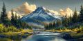 Majestic Snow-Capped Mountain Overlooking a Tranquil River Landscape