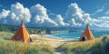 Serene Oregon Coast Landscape Featuring Native American Teepees