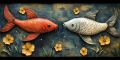 Vibrant Encounter: Two Fish Locked in a Colorful Dance on Canvas
