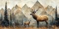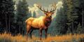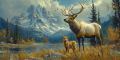 Majestic Elks in a Serene Mountain Landscape: A Realistic Illustration