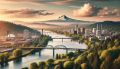 Sunset Over Portland: A Watercolor Reflection of Urban Beauty