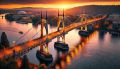Surreal Sunset and Swirling Skies Over Stylized Portland Bridge