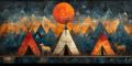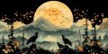 Majestic Mt. Hood Under a Giant Harvest Moon in Vibrant Illustration