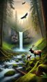 Serene Silver Falls: A Deer Amidst Cascading Waters and Whimsical Trees