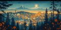 Enchanted Evening: Portland Skyline Illuminated with Symbolic Artistry