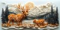Majestic Deer and Fawn Amidst Snowy Peaks and Starry Sky