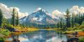Tranquil Morning at a Cartoonish Ukiyo-e Style Mountain Lake