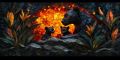 Majestic Elk under a Burning Sunset in a Mystical Forest