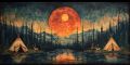 Enchanted Twilight: Tipis under a Giant Moonlit Sky in Portland