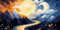 Enchanting Night Sky Over a Stylized Mountainous Landscape