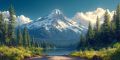 Serene View of Mt. Hood Overlooking a Crystal Lake and Lush Forest
