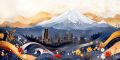 Enchanting View of Portland with Majestic Mt. Hood in Artistic Representation