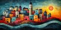 Vibrant Impasto Oil Painting of Portland Skyline and Mount Hood