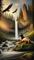 Majestic Elk and Calf by Latourell Falls under Soaring Eagles