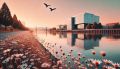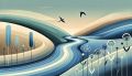 Peaceful Aerial Interpretation of Portland’s Willamette River in Art